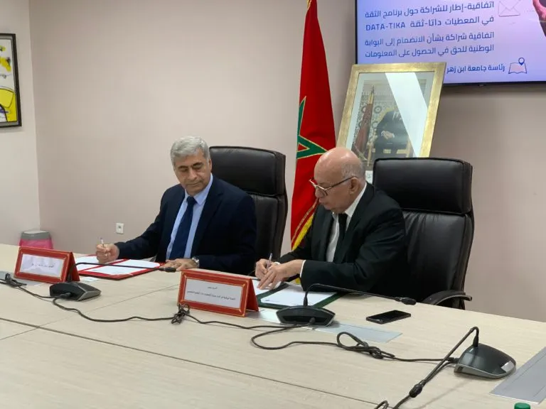 وتتعلق الاتفاقية الأولى بتنزيل برنامج “الثقة في المعطيات” DATA-TIKA داخل الجامعة، وهو برنامج وطني يروم نشر ثقافة حماية المعطيات الشخصية وتعزيز الأمن الرقمي، إضافة إلى توعية الطلبة والأطر بالممارسات السليمة في التعامل مع البيانات. أما الاتفاقية الثانية فستمكّن الجامعة من الانضمام إلى البوابة الوطنية للحق في الحصول على المعلومات، بما يتيح للطلبة والباحثين والمرتفقين إمكانية الولوج السلس إلى المعلومات العمومية في إطار يعزز الشفافية وجودة الخدمات.