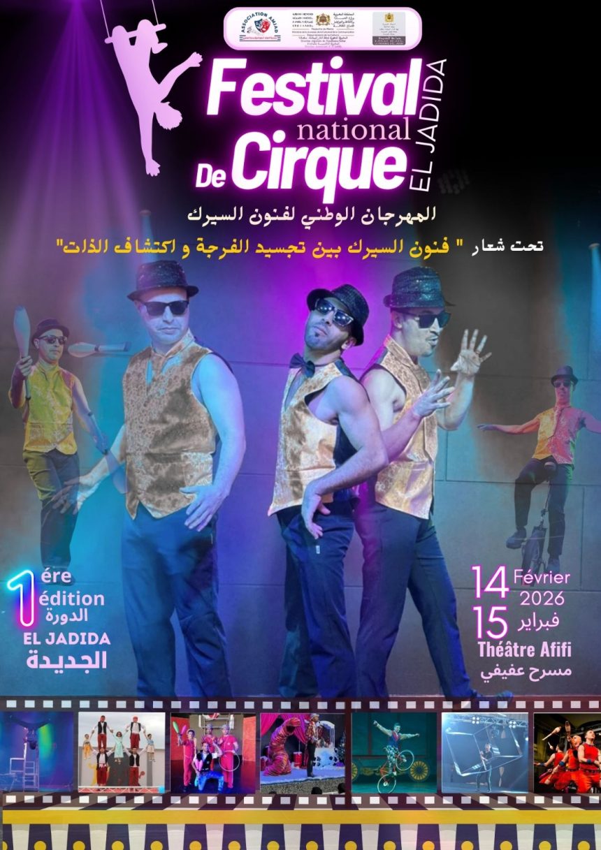 تستعد مدينة الجديدة وعاصمة إقليم دكالة جوهرة الأطلسي لاحتضان فعاليات “الدورة الأولى لمهرجان فنون السيرك 2026 كتجربة فنية فريدة على المستوى الوطني.أنه حدث إستثنائي والأول من نوعه وذلك أيام 14 و 15 فبراير 2026.