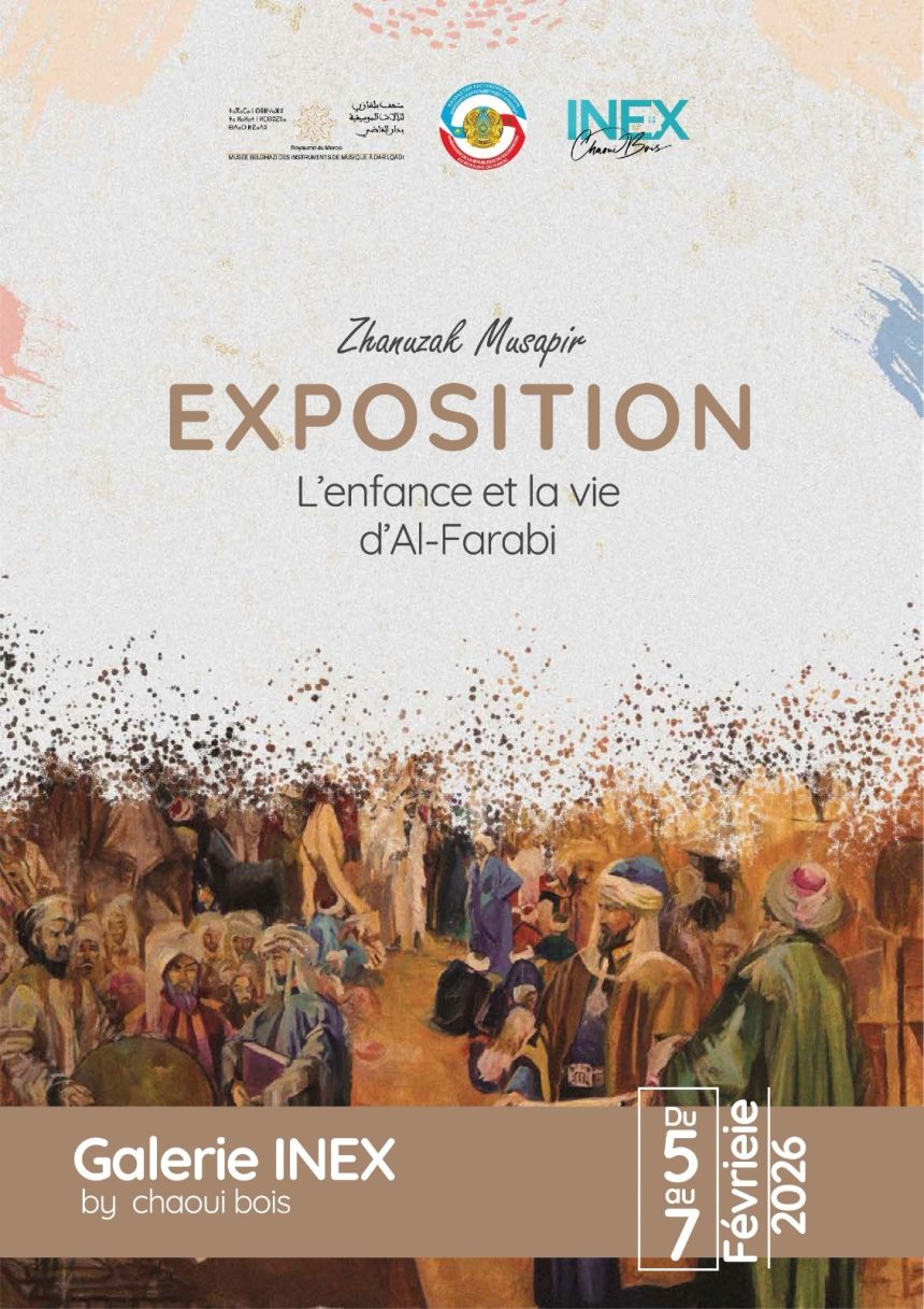 يذكر أن الفنان العالمي الكازاخي “جانوزاك موسابير”، هو كاتب وفنان تشكيلي حاصل على عدة أوسمة عالمية، كما تُعرض أعماله في متاحف ومجموعات خاصة بعدة دول حول العالم، ولأول مرة تعرض أعماله الفنية بالمملكة المغربية، حيث يستضيف الرواق الفني” INEX ” بمدينة سلا، معرض بعنوان “الطفولة وحياة الفارابي”، في الفترة بين 5 إلى 7 فبراير 2026، بالشراكة مع سفارة جمهورية كازخستان بالرباط و متحف بلغازي للآلات الموسيقية بدار القاضي.