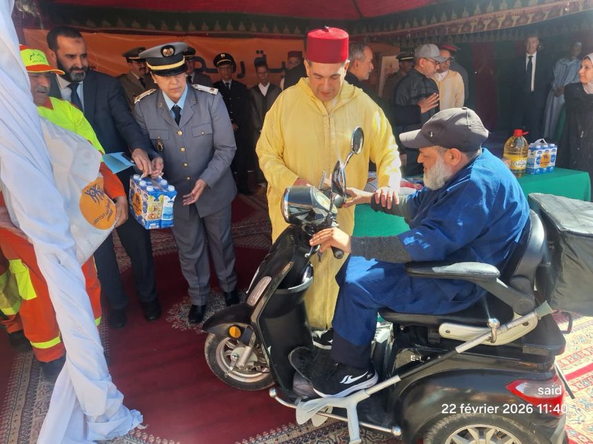أشرف سعيد أمزازي والي جهة سوس-ماسة عامل عمالة أكادير إداوتنان صباح هذا اليوم بجماعة الدراركة على إعطاء إنطلاقة عملية “رمضان 1447” لمؤسسة محمد الخامس للتضامن، بحضور السلطات المحلية والمصالح الأمنية والإدارية المختصة على رأسها المصالح الإجتماعية للقوات المسلحة الملكية، وهي عبارة عن قفف رمضانية متنوعة موجهة كدعم للطبقة الهشة ترسيخا لروح التضامن والتكافل تزامنا وشهر رمضان المبارك.