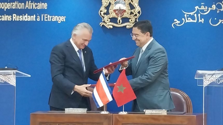 ووقع كل من وزير الشؤون الخارجية والتعاون الإفريقي والمغاربة المقيمين بالخارج، ناصر بوريطة، ووزير العلاقات الخارجية والعبادة بجمهورية كوستاريكا، أرنولدو أندري تينوكو، الذي يقوم بزيارة عمل للمملكة، عقب مباحثاتهما، إعلانا مشتركا يمثل لهذه المرحلة الجديدة في العلاقات الثنائية، القائمة على رؤية مشتركة لتعاون متين يحترم خصوصيات كل طرف.